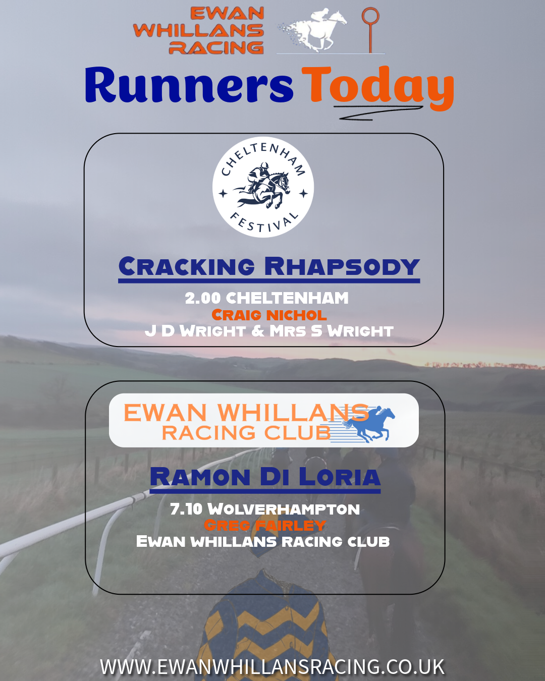 Today we send out two runners, one on racing’s biggest stage at the Cheltenham Festival and another this evening on the all-weather at Wolverhampton. Both head into their races in good form and we’re hopeful they can give their owners another enjoyable day.