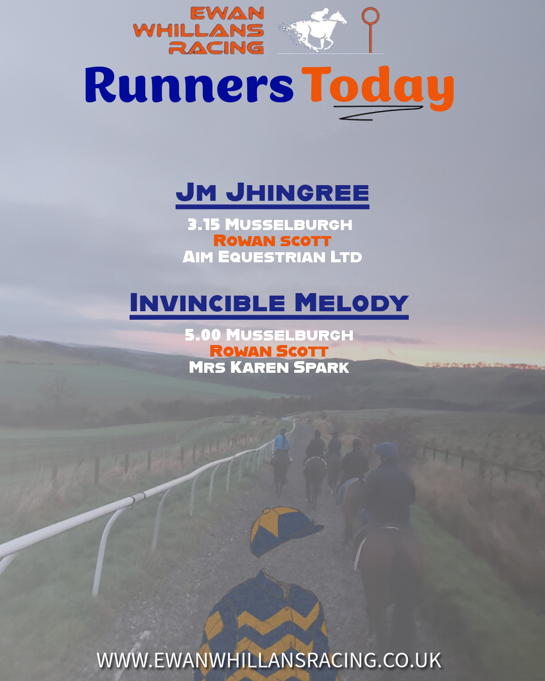 We send two runners to Musselburgh Racecourse today, both partnered by Rowan Scott, and we’re hopeful of a couple of encouraging performances.