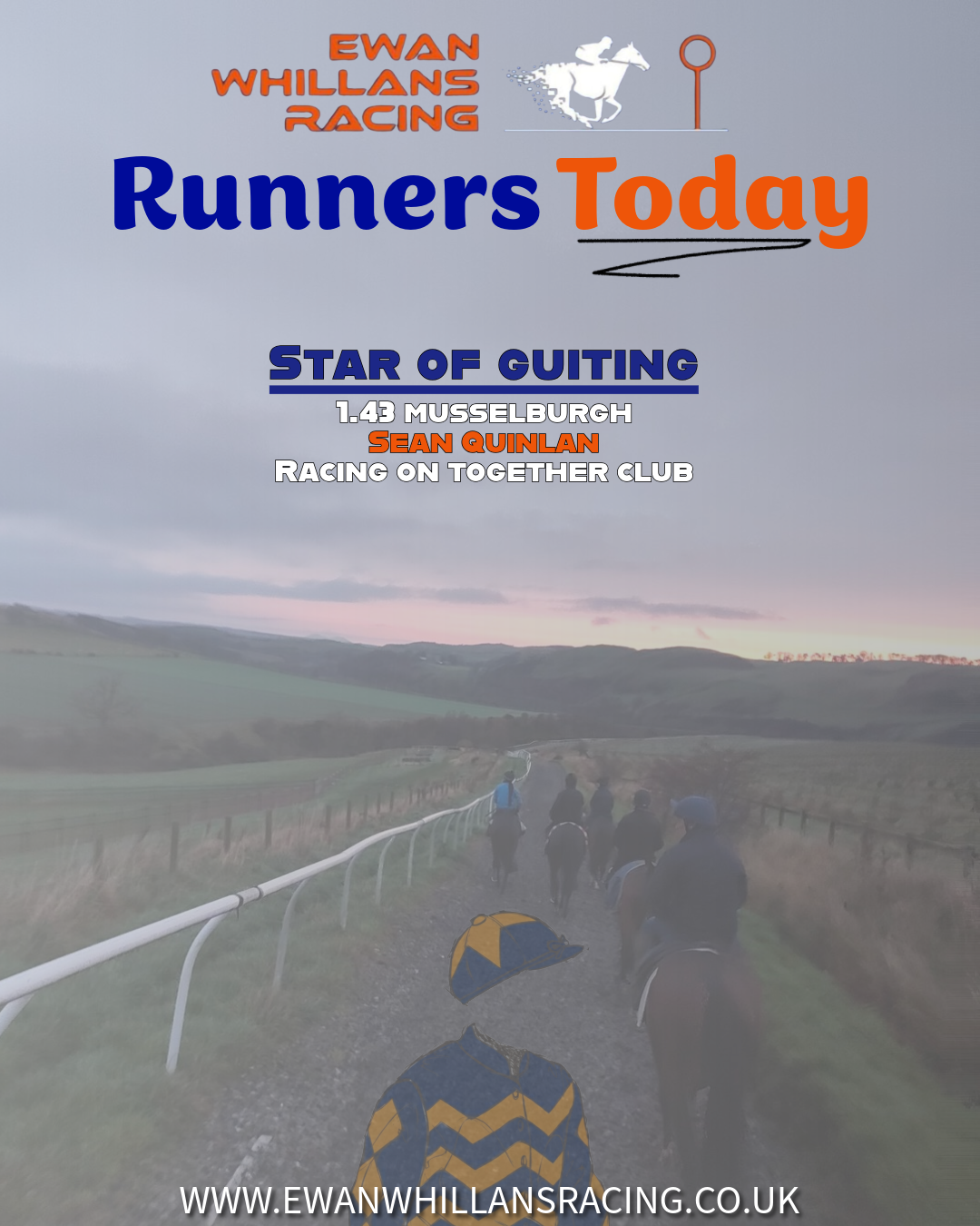 We’re back in action today with Star of Guiting, who lines up in the 1.43 at Musselburgh, with Sean Quinlan taking the ride.