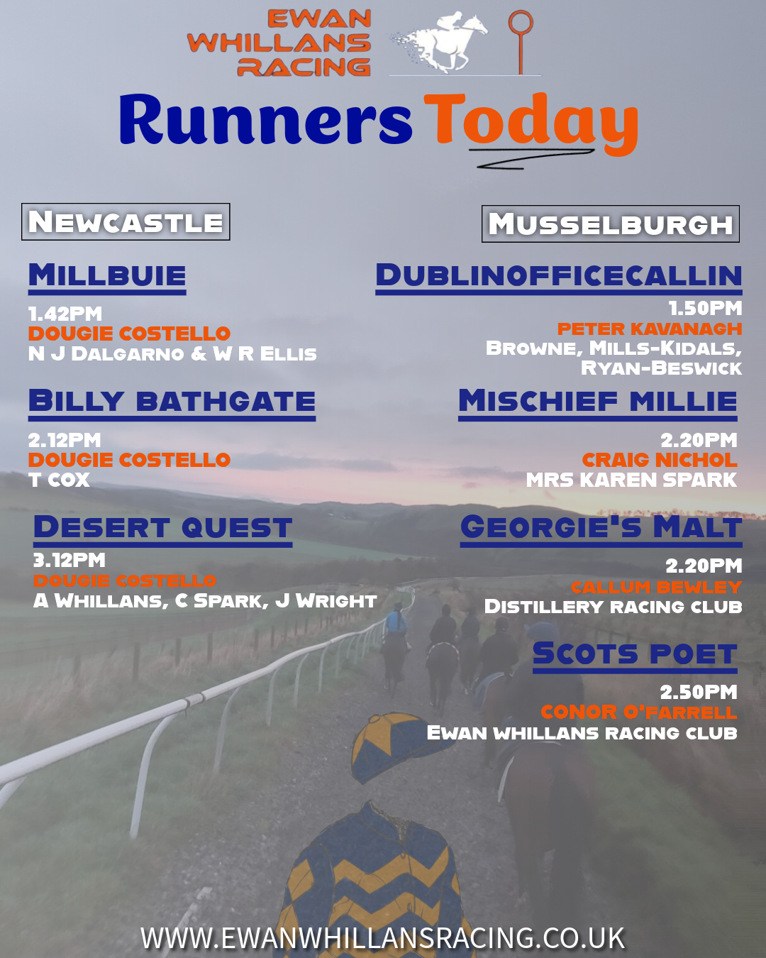 We send out seven runners across both codes today, with representatives at Newcastle Racecourse and Musselburgh Racecourse. It’s a full and competitive afternoon, and we’re looking forward to seeing how they all get on.